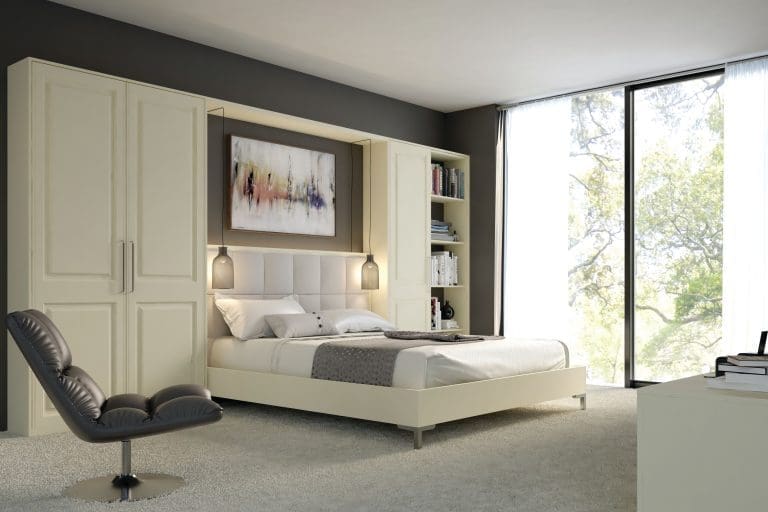 Make space for your belongings with bespoke storage like this Alabaster Tuscany bedroom from the Bella collection. Keep your bedroom feeling light and airy with neutral colour tones and a solid colour on your bedding and curtains as the perfect accompaniment.