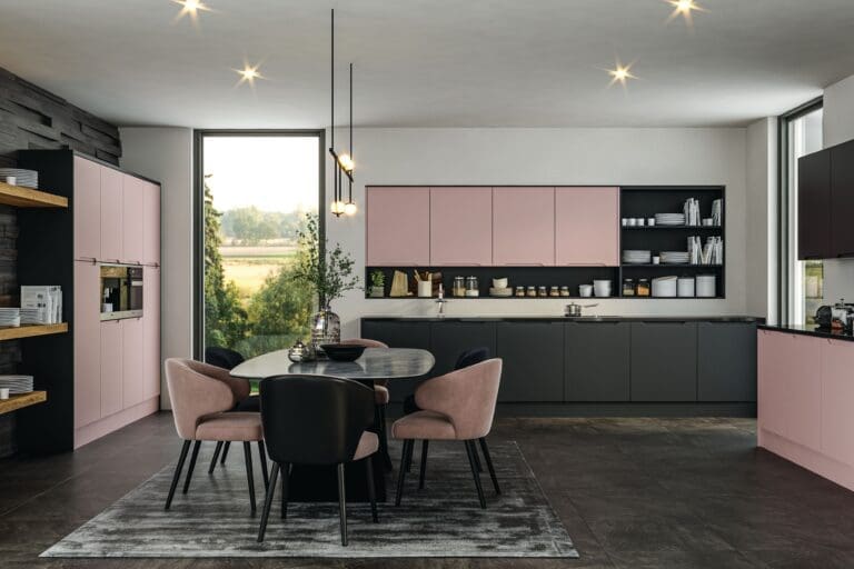 Ideal for homeowners looking for a modern, stylish, and functional fitted kitchen, the Bella Matt Blush Pink Handleless Kitchen transforms your space into a statement area that’s as beautiful as it is practical.