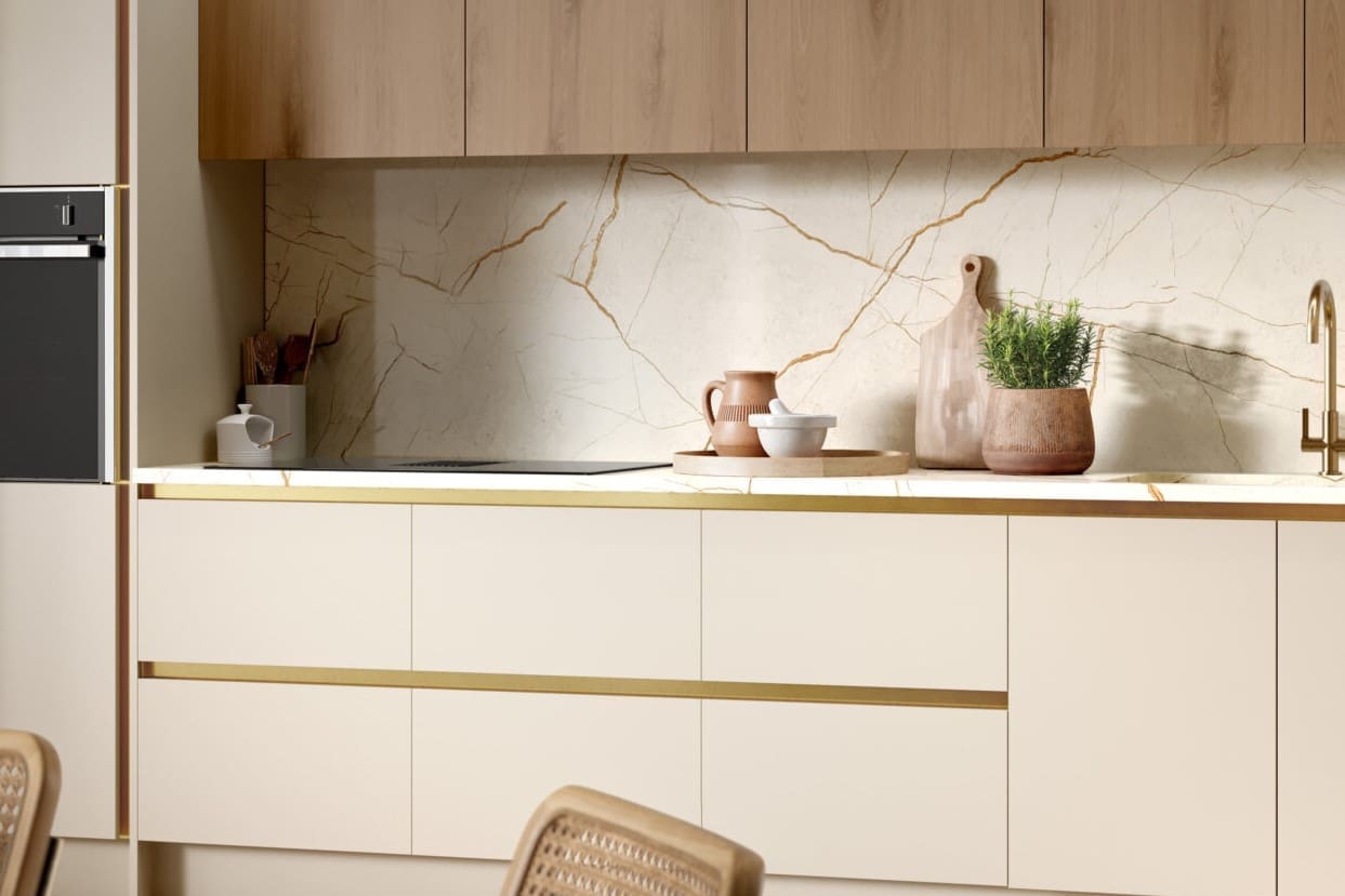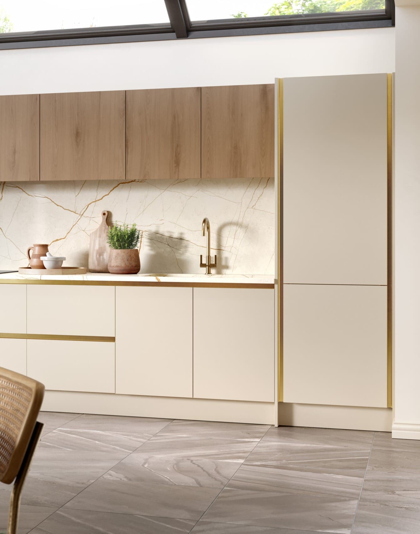 Shown here in the sleek Venice handleless design, these finishes are available in a wide range of door styles, allowing you to achieve the perfect look for your kitchen—whether you prefer a minimalist aesthetic or a more traditional shaker style. Plus, with a made-to-measure option, every door is crafted to fit seamlessly into your space.